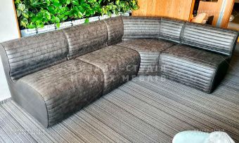 М'які меблі зі шкіряною оббивкою виготовляються з високоякісної натуральної шкіри або замінника, вони функціональні, вишукані і довговічні. Відтінки та текстури тканинної оббивки дають можливість виготовити дивани, ліжка або кутові дивани за доступною ціною витримуючи стиль та кольорову гаму приміщення.